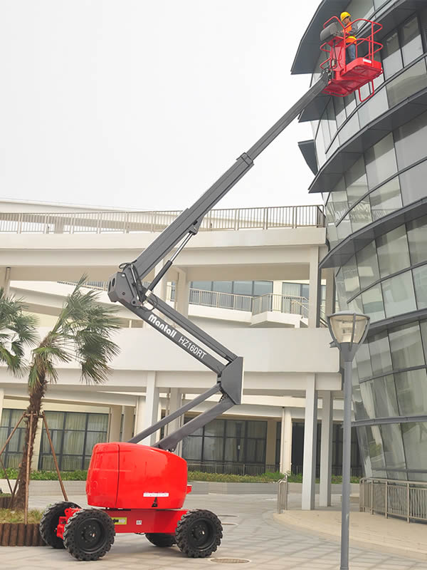 Nuestras plataformas articuladas autopropulsadas HZ160RT/HZ160JRT están diseñadas para soportar capacidad de elevación de 230kg, además de alturas de trabajo de hasta 16 metros, además son adecuadas para operaciones de posicionamiento y elevación precisas multidireccionales y permiten a los trabajadores llegar a áreas de trabajo de difícil acceso evitando obstrucciones, sin olvidarnos de la parte de la seguridad para los operadores.